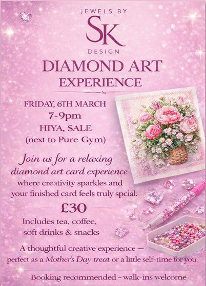 Browse our upcoming Sip & Sparkle events and workshops and book your place for a mindful creative experience — designed to help you slow down, sip something lovely, and create something beautiful.