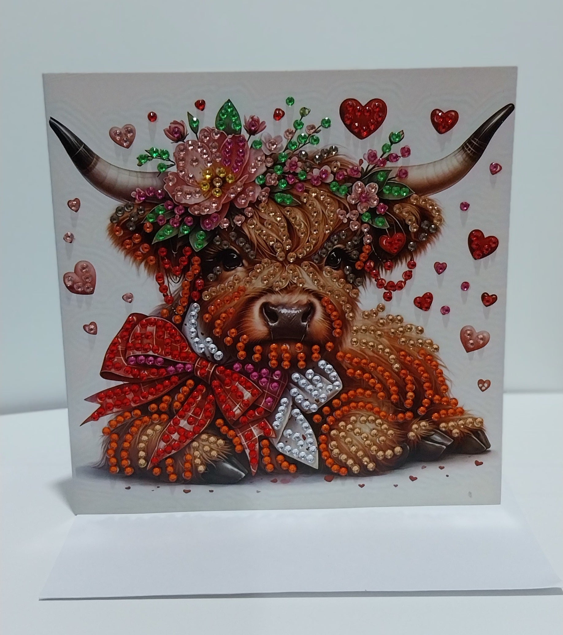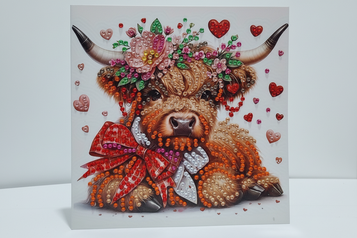 Highland Cow with Red Bow Diamond Art Card